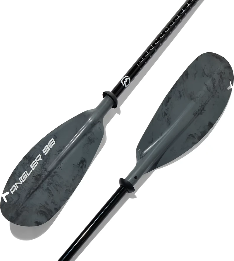 Bring the Magellan Outdoors Angler Paddle on your next boating adventure. Its length is compatible with kayaks with elevated seats. The fiberglass reinforced composite blades enhance durability, and its line catch in the blades helps free snagged lures. The 48-inch ruler on the shaft allows for quick measurements.