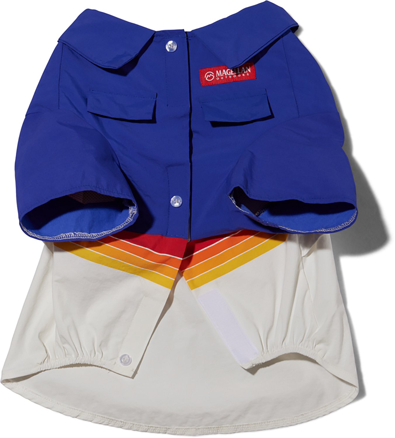 Dress up your pup with the Magellan Outdoors Busch Light Dog Shirt. Its 100% polyester material is comfortable for your dog to wear. The hook-and-loop closure secures the shirt on your pet, and the functional back vent with mesh keeps your pooch cool. Its relaxed Laguna Madre fit is loose, allowing your pet to keep running around.