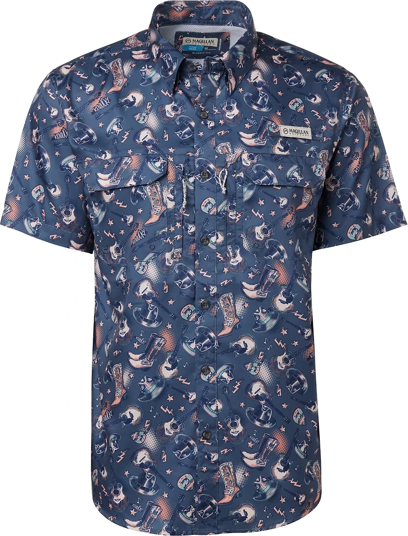 Show everyone where you're from with the Magellan Outdoors Men's Kentucky Local State Print Shirt. This button-down shirt is made of polyester twill with moisture-wicking technology for a dry, comfortable feel. The graphic design highlights your southern roots. UPF 30 sun protection. Short sleeves.