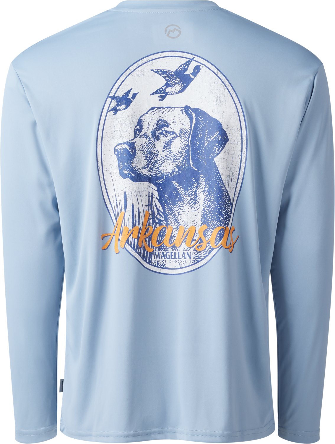 Show off your state pride with the Magellan Outdoors Men's Local State Arkansas Graphic T-shirt. Made of moisture-wicking polyester, this T-shirt is soft and comfortable and protects your skin from the sun's rays. The Arkansas-inspired graphics highlight your love for the Natural State and the Land of Opportunity.