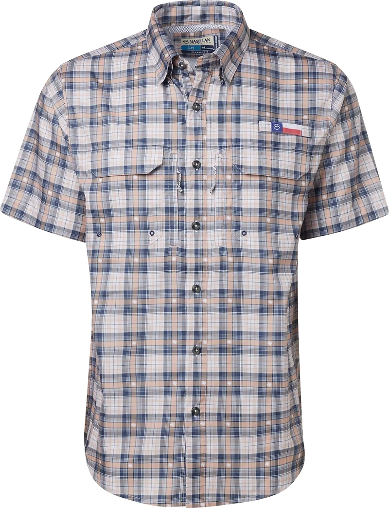 Show off your state pride with the Magellan Outdoors Men's Local State Texas Plaid Shirt. Made of moisture-wicking polyester, this button-down shirt is soft and comfortable and protects your skin from the sun's rays. The Texas-inspired graphics on top of a stylish plaid print highlight your love for the Lone Star State.