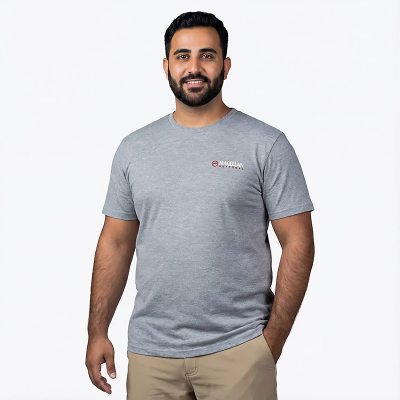 Show off your sense of style when you wear the Magellan Outdoors Men's Overhead T-shirt. The polyester and cotton construction offers a comfortable feel all day long, while the screen-printed graphics add an eye-catching appearance.