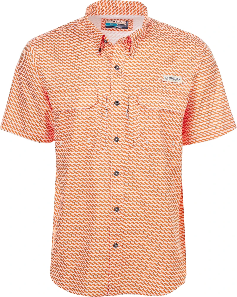 Show everyone where you're from with the Magellan Outdoors Men's Tennessee Local State Print Shirt. This button-down shirt is made of polyester twill with moisture-wicking technology for a dry, comfortable feel. The graphic design highlights your southern roots. UPF 30 sun protection. Short sleeves.