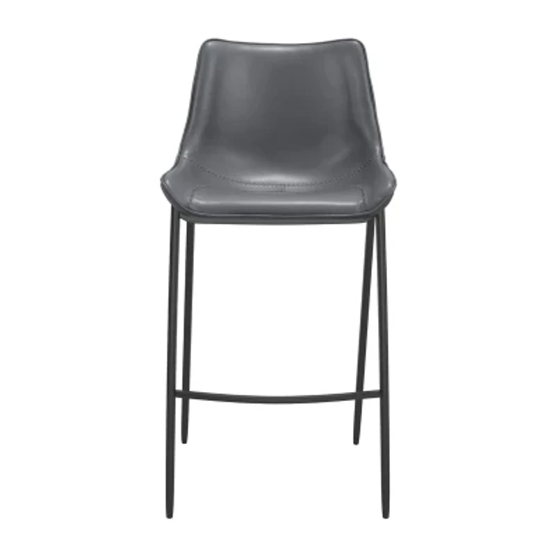 The ZUO Magnus, where high design meets everyday casual. This handsome barstool with its slim profile pulls up perfectly to the bar. Its super comfortable curved seat is covered in black faux leather with dramatic stitching. Brushed stainless steel legs are complete with protective plastic feet to keep your floors scratch-free. It has a built-in footrest.