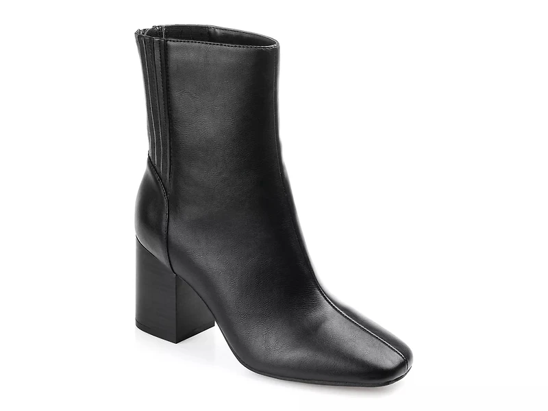 Look cool and polished in the Maize bootie from Journee Collection. Stretch goring at the back heel panel offers an improved fit, while the stacked block heel raises your style.