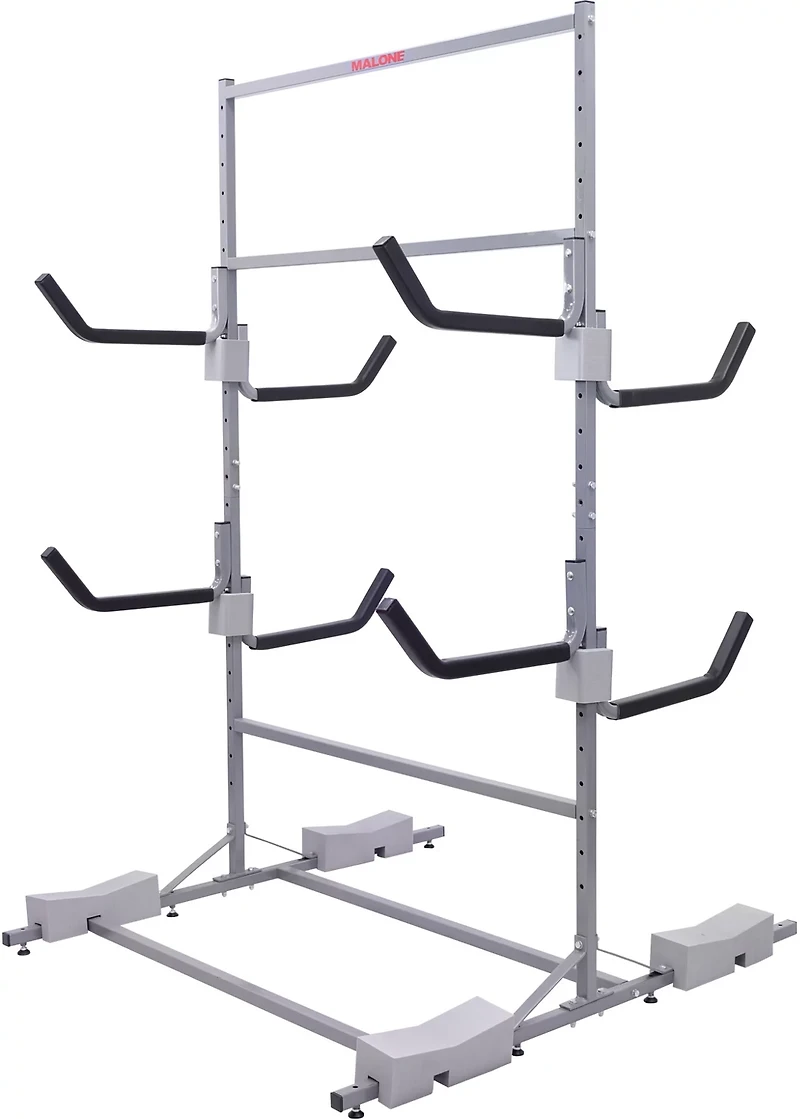 Have your kayaks ready for a day on the water by storing them with the Malone Auto Racks FS 6-Kayak Storage Rack. This easy-to-assemble rack fits most boat profiles and can accommodate up to 6 kayaks. It boasts a heavy-duty, powder-coat steel construction with corrosion-resistant hardware for a rack that can withstand the test of time. J-style padded holders help prevent your boats from becoming scuffed and scratched as you load and unload them.
