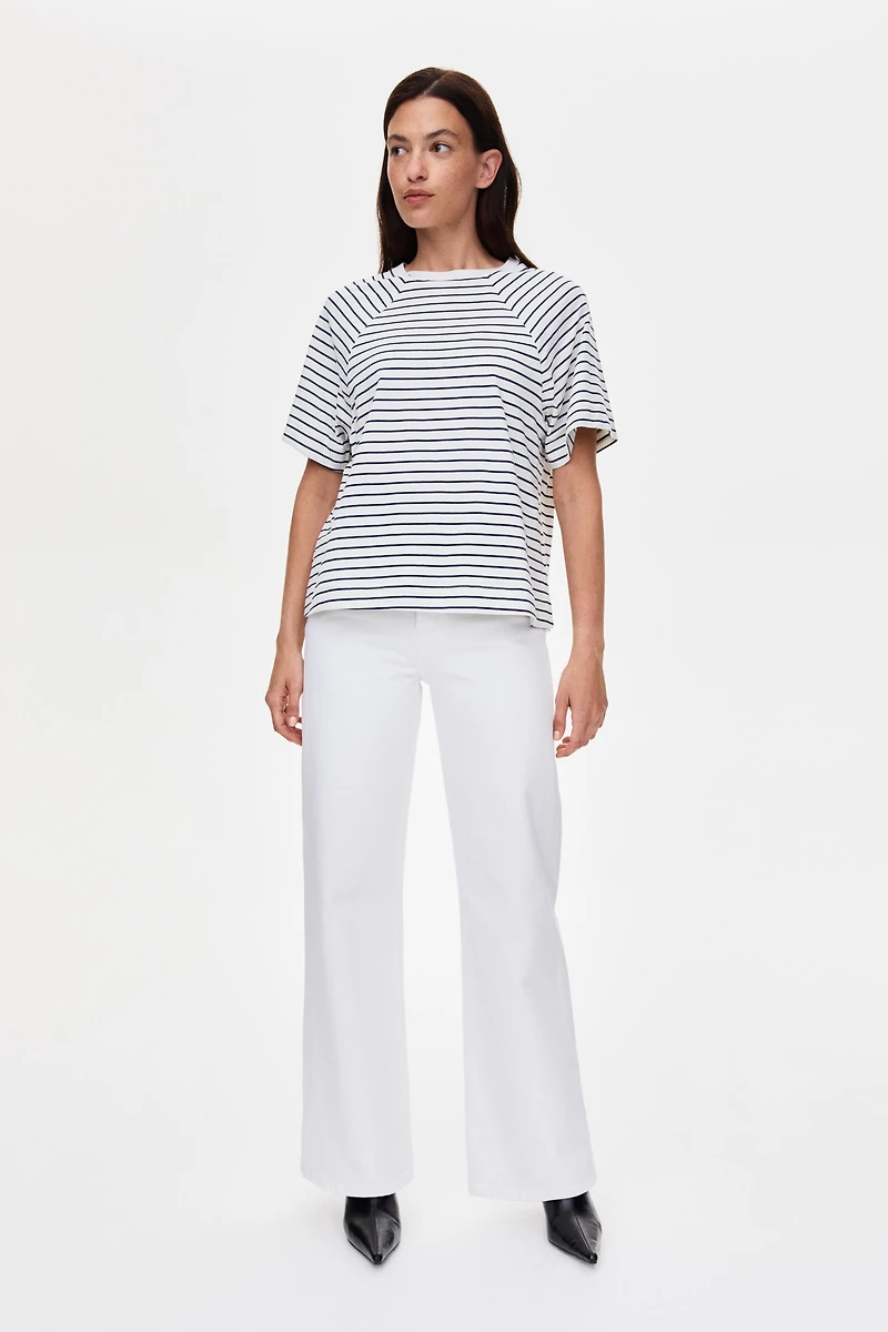 Loose-fit, crewneck nursing T-shirt in soft cotton jersey with a straight-cut hem. Elbow-length raglan sleeves with a concealed zipper along front seam for quick and easy nursing access. For wear during pregnancy and when nursing.
