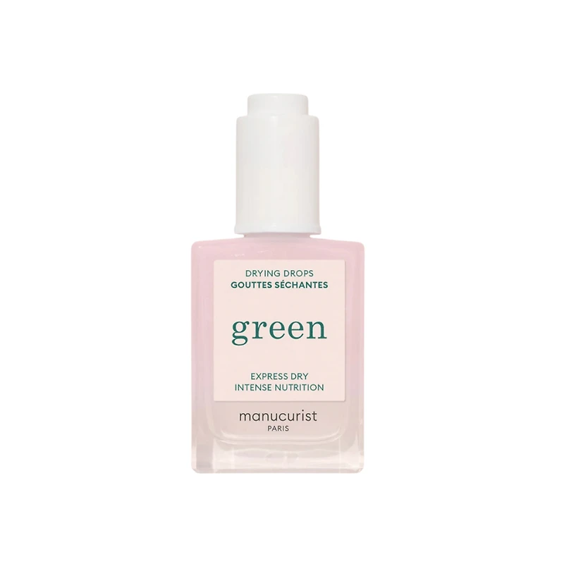 Green Drying Drops. Features: Dries polish twice as fast. Delicate floral scent. Nourishes cuticles. Argan ceramides. Strengthens skin barrier. Plant based. Vegan. Cruelty Free. Made in France. Benefits: Enriched with ceramides they leave the cuticle perfectly nourished.. Research Results: 2X faster drying. Drying time -51% (lab tested).