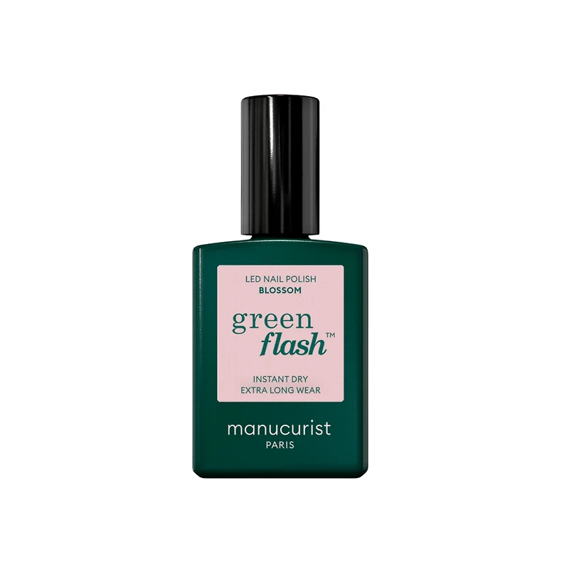 Green Flash LED Gel Polish Blossom. Benefits: 12+ days of wear. High Shine. Quick dry. Removed in just 1 minute without acetone. Hema Free. TPO free. 12-free. Vegan. Made in France. Cruelty Free. Plant powered formulas. Removed without acetone. Key Notes: 12 days of wear and mirror-like shine. Dries instantly under an LED lamp. Perfect alternative between a semi-permanent polish and a classic nail polish for a flawless manicure. 96.5% bio-based ingredients. Vegan. Made in France. Requires a base coat, a color, a top coat from the Green Flash range, and an LED lamp with a minimum power of 24W. Research Results: Proven results. 96% find their nails harder. 88% find their nails more beautiful. 88% find their nails protected. 85% find their nails stronger. 92% recommend this manicure routine. Clinical test conducted on 21 women after 3 weeks of use*.