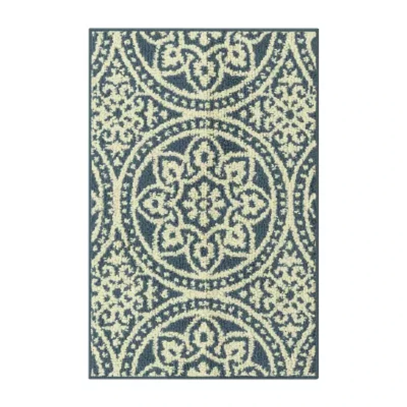 Maples Circle Medallion Blue Indoor Rectangular Accent Rug