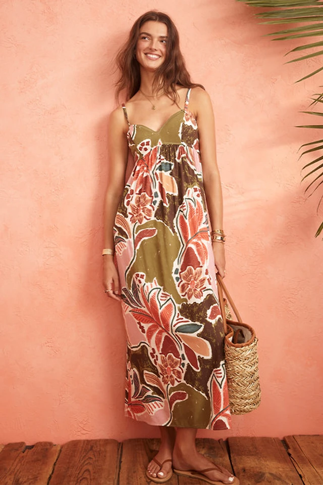 Feather Gray Cotton-Blend Shadow Palm Print Ruched Fitted Maxi Dress