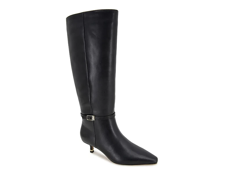 Show off your sleek style with any cool weather look with the Marais boot from Kenneth Cole New York. The pointed toe, kitten heel, and knee-high silhouette with a decorative buckle furthers the modern appeal of this pair.