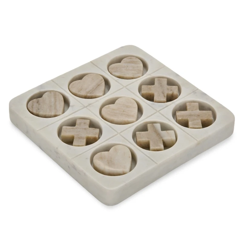 Our Marble Tic Tac Toe Game Set includes heart shaped game pieces, adding a lovely twist to a classic board game! Plus, the neutral-toned marble gives it a chic, modern look. Board measures 8L x 8W x 1H in. Crafted of marble Hues of white and brown Includes four (4) X pieces and five (5) heart shaped pieces Tabletop use Care: Dust with a soft, dry cloth. Contact your local Kirkland's store for availability. Quantities and selection may vary by location. WARNING: Cancer and Reproductive Harm - For more information go to www.P65Warnings.ca.gov .