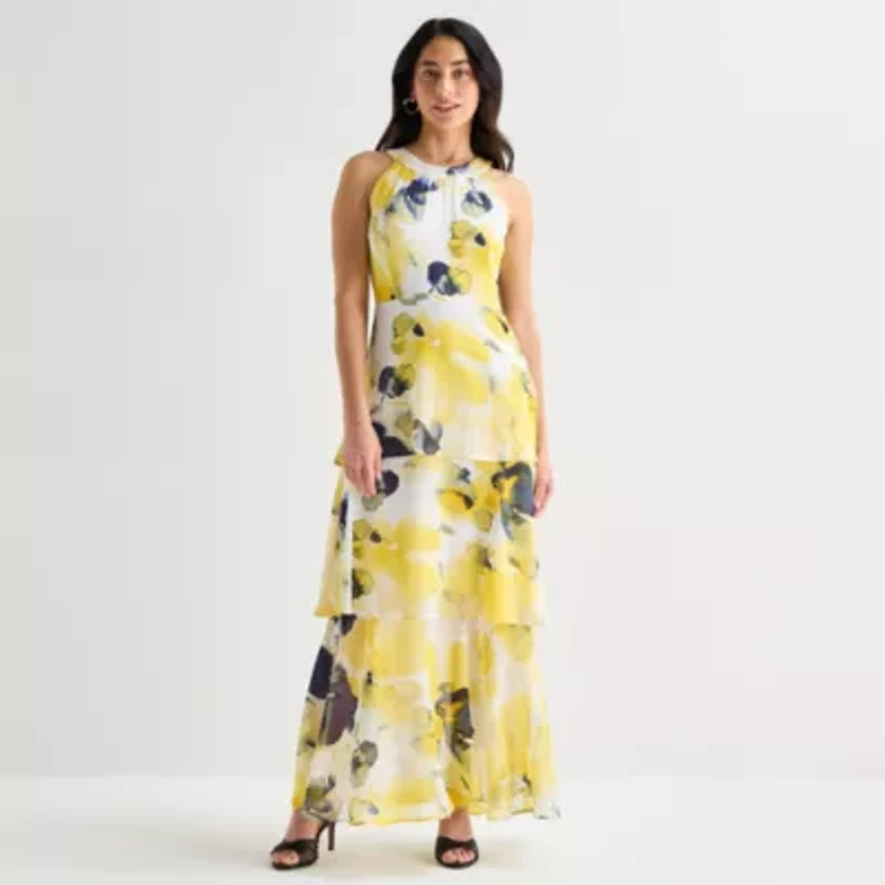 Modern and chic, this women’s maxi dress from Marc New York flows with a sleeveless silhouette and tiered skirt. The halter neckline with hidden back zipper keeps the look refined. Style it with sleek sandals and minimal jewelry.