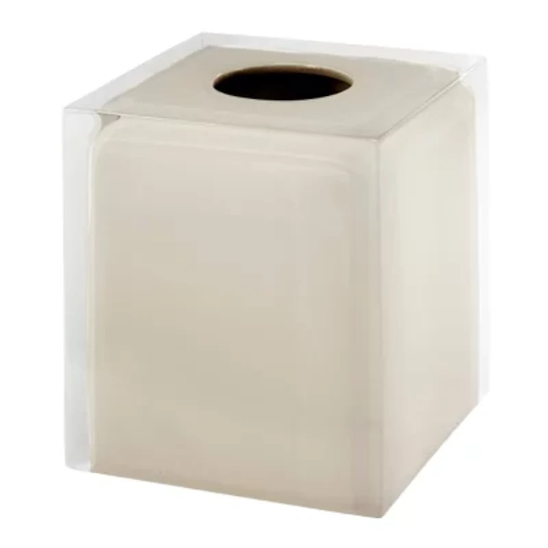 The Izod Marina Linen Tissue Box Cover features a clear resin exterior that shows off the painted linen interior for a sleek, modern look. The perfect addition to any bathroom, bedroom, kitchen or office. Made of durable resin for years of use. Other matching bath accessories and colors available. 1-piece Solid Imported Product Specifications 5.25-in. x 5.25-in. x 5.90-in. Material & Care Resin Wipe clean