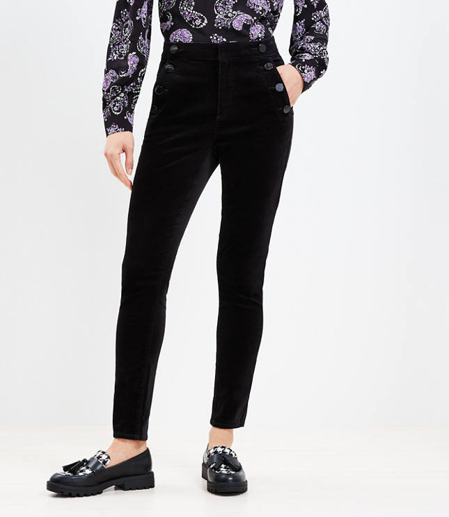 Pants Details: Front zip with hook and bar closure. Belt loops Slash pockets Back welt pockets., Leg Shape: Skinny - skinny from hip to leg, Rise: Sits at high waist, 11 1/2"rise, Imported:, Fit: Clean, classic and curve - skimming, with a little extra stretch for comfort, Length: Full length, 29"inseam, Fabrication: 97% Cotton, 3% Elastane, Garment Care: Machine Washable Loft Mariner Skinny Pants in Velvet Size 24 Black Women's by Loft Size Regular - 24 Black Women's Regular, Skinny Pants 97% Cotton 3% Elastane Machine Washable
