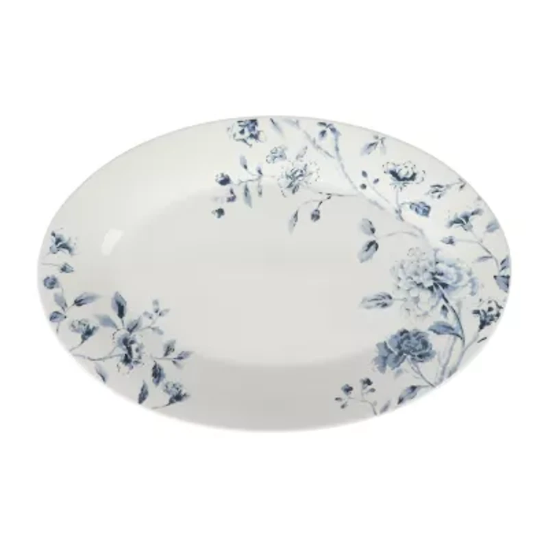 As classic as it is beautiful, the empress bouquet 17-inch fine ceramic serving platter from Martha Stewart offers an approachable take on a centuries-old design. Inspired by and decorated with chinoiserie motifs, this special collection captures the intricacies of delicate floral patterns for an easy but refreshing update to everyday table settings. True to Martha's passion to combine practical use and elegant style, this serving platter is made from high-quality fine ceramic to extend durability for year-round entertaining at home. An ideal wedding or housewarming gift to newlyweds or a small family, this piece of serveware is a thoughtful addition to their collection as they explore new beginnings and build their own culinary traditions for the holidays and beyond. Dishwasher and microwave safe.
