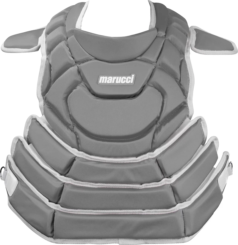 Thoughtfully designed, the Marucci Fastpitch Catcher's Chest Protector allows you to move comfortably without sacrificing protection. It features a 3-way harness design that's flexible and easy to adjust. And with energy-absorbing memory foam and a PE throat guard, you'll be protected from impact.