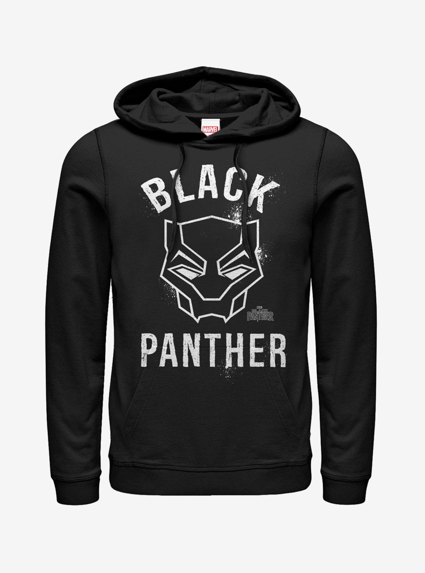 Black Panther's suit makes him all-powerful but the Marvel Black Panther 2018 Classic Men's Lightweight Hoodie just makes him stylish. Black Panther's mask is featured in a spray paint style and is encircled by "Black Panther" in distressed white text across this cool Marvel sweatshirt.