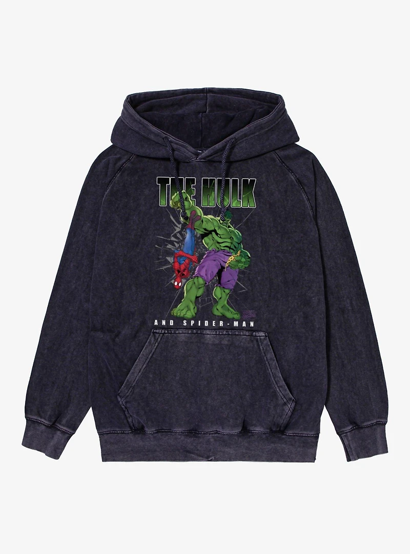 Marvel Comics Hulk Spider And Pizza Mineral Wash Hoodie