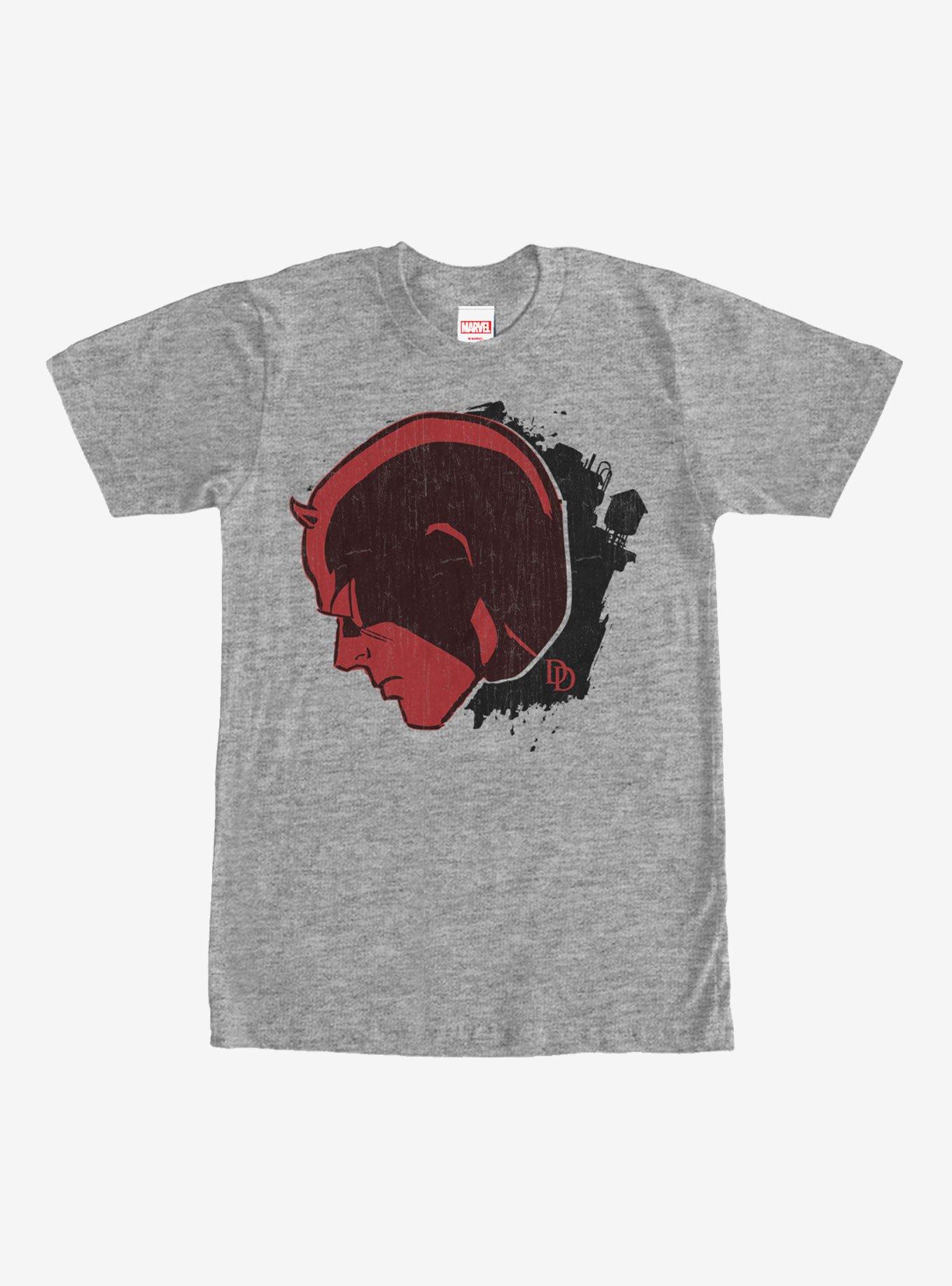 Celebrate the vigilante dedicated to keeping Hell's Kitchen safe with the Marvel Daredevil Profile Hell's Kitchen Heather Gray T-Shirt. Daredevil's profile is printed front and center on this awesome gray Daredevil shirt with Hell's Kitchen in the background and the Daredevil logo below. 60% Cotton, 40% Polyester.