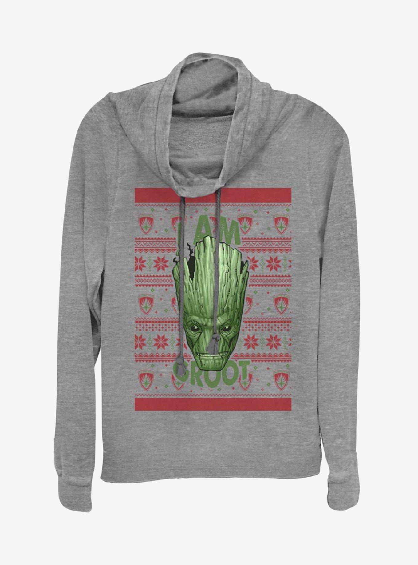Marvel Guardians Of The Galaxy Groot Christmas Pattern Cowlneck Long-Sleeve Womens Top