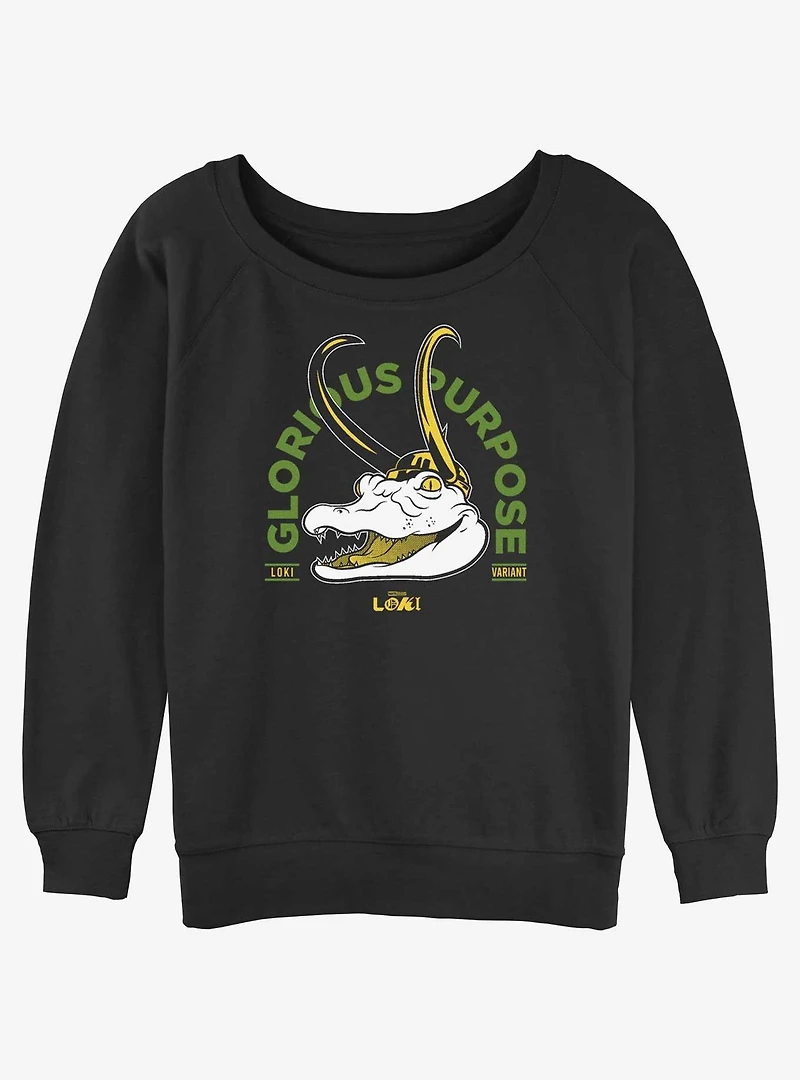 Marvel Loki Alligator Loki Glorious Purpose Girls Slouchy Sweatshirt