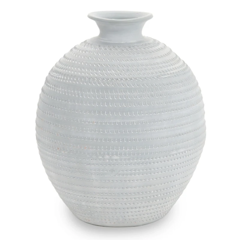 Elevate your home décor with this Matte Blue Gray Ceramic Vase! Its versatile design makes it perfect for displaying fresh blooms, dried arrangements, or as a standalone statement piece on shelves, tables, or mantels. Vase measures 12.6H x 11 in. in diameter Crafted of stoneware Matte finish Features a grooved texture Hues of blue and gray Weight: 6.6 lbs. Water tight construction Care: Dust with a soft, dry cloth. Contact your local Kirkland's store for availability. Quantities and selection may vary by location.