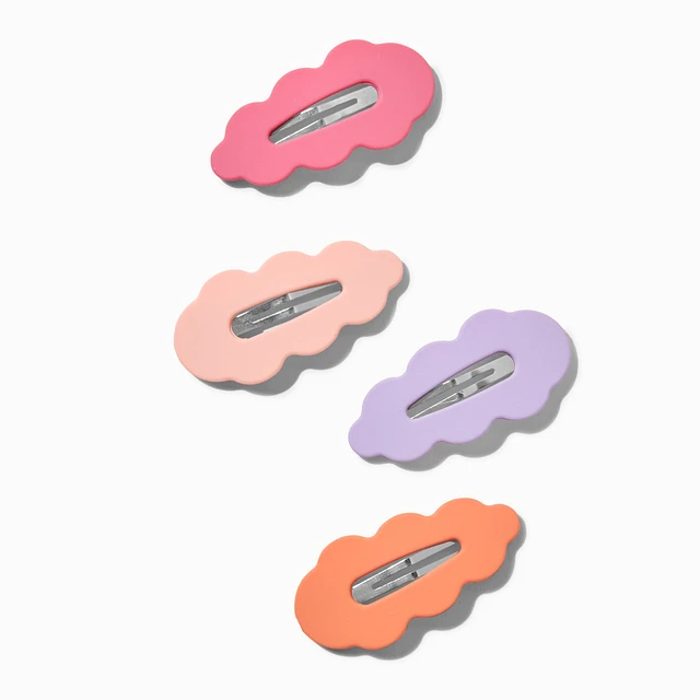 Matte Scalloped Hot Pink Snap Hair Clips - 4 Pack