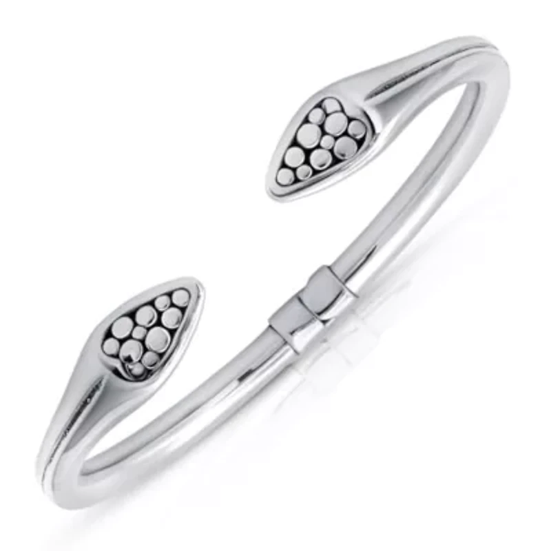 MAX + STONE 925 Sterling Silver Bracelet for Women | 7 Inch Beaded Point Open Bangle Bracelets with Hinged Clasp | Anti-tarnishing Sterling Silver Bangle Bracelet | Silver Bangles for Women