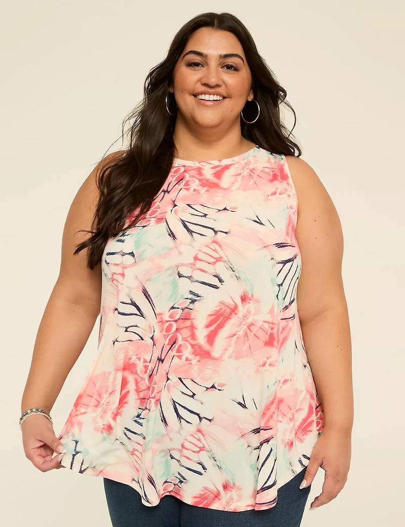 Available in Plus Size We designed this tank to the max, from the super swing to the tunic length. FIT: MAX SWING: A tunic-length that's super swingy (but never clingy). Front Body Length From Shoulder: 33" (On Size 18), Back Length: 35" Tunic length is perfect for added coverage FEATURES: Boat neck Sleeveless FABRIC: Super-soft & stretchy crepe knit TURN INSIDE OUT, MACHINE WASH COLD WITH LIKE COLORS, GENTLE CYCLE, ONLY NON-CHLORINE BLEACH WHEN NEEDED, TUMBLE DRY LOW, COOL IRON IF NEEDED 95% Polyester/5% Spandex Item Number #414295 Imported Plus Size Top ". Plus Size Max Swing Boatneck Tank, in Orchid Garden, 18/20, Women's, Lane Bryant