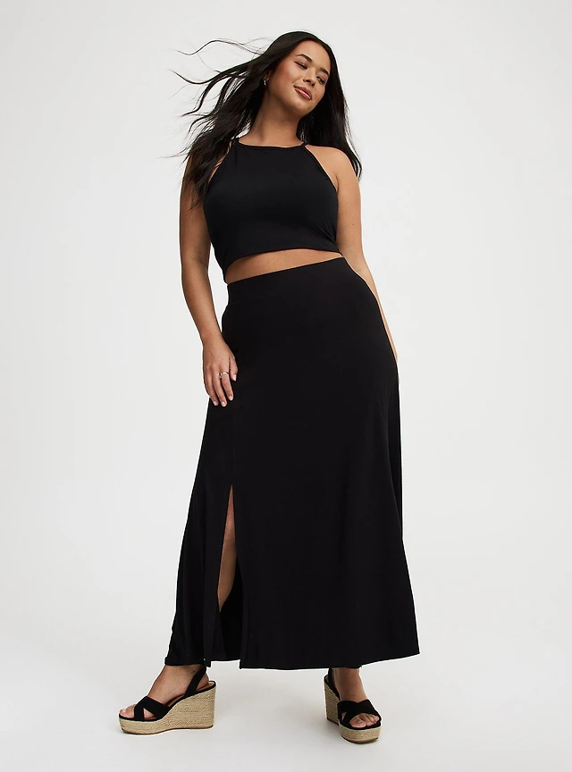 Lightweight Woven Stretch Side Slit Skirt - Mini Grid