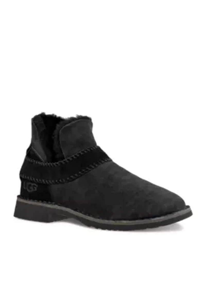 All the benefits of UGG® Classic with a Chelsea boot feel, the McKay is crafted from soft sheepskin for a plush, warm everyday boot. Pair with high-waisted denim and a mock neck sweater for weekend days. Slip-on Round toe Wool insole Topically applied water repellency treatment Imported Product Specifications 1 in heel, 4.5 in shaft Medium width Material Sheepskin