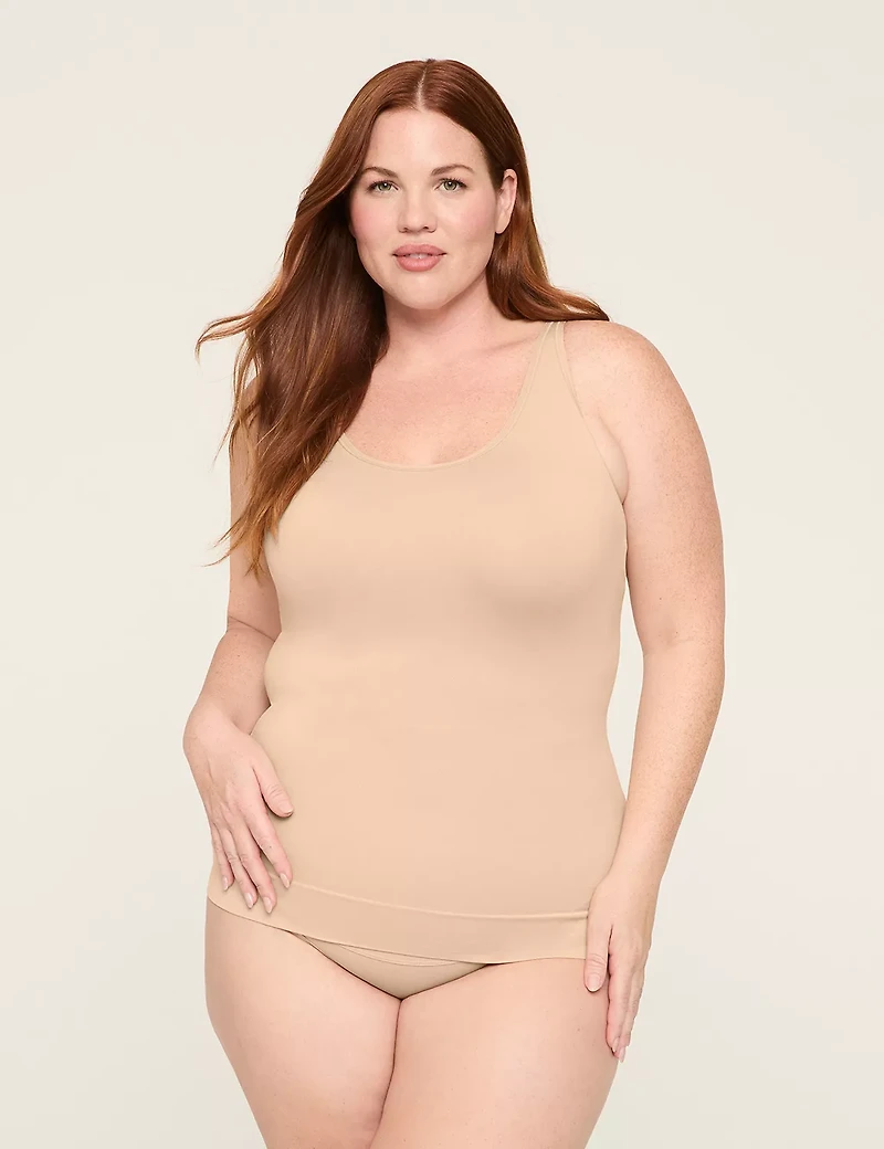 Available in Plus Size This shaping cami is the perfect layer under clingy tops. The zoned design keeps you supported and smooth. Scoop neck. Item Number #402215Imported Plus Size Shapewear Cacique Intimates". Plus Size Medium Shaping Seamless Cami, in Cafe Mocha, 18/20, Women's, Cacique for Lane Bryant