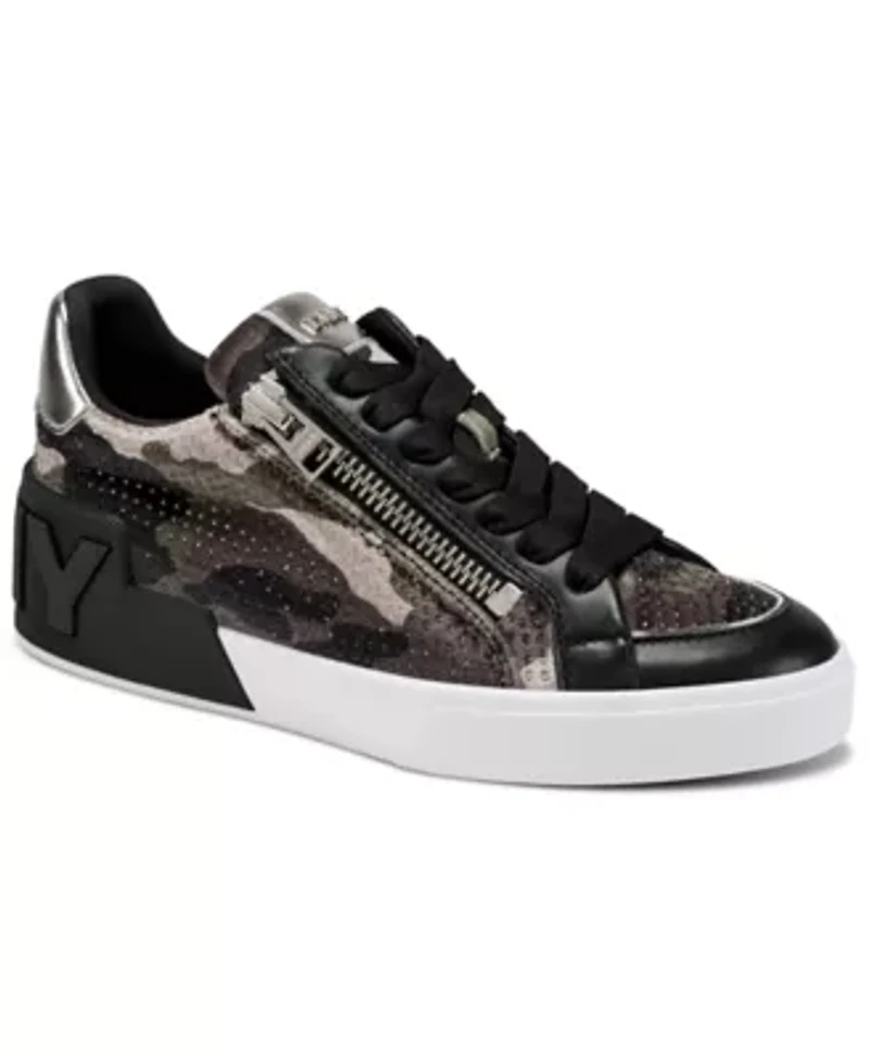 DKNY gives the classic street sneaker a bold refresh with the Mei lace-up. A mixed camo pattern and sleek metallic accents deliver standout edge, while the side zipper adds a modern, functional twist for easy on-off appeal. Lace-up closure Imported Product Specifications 1.18 M Material Polyester
