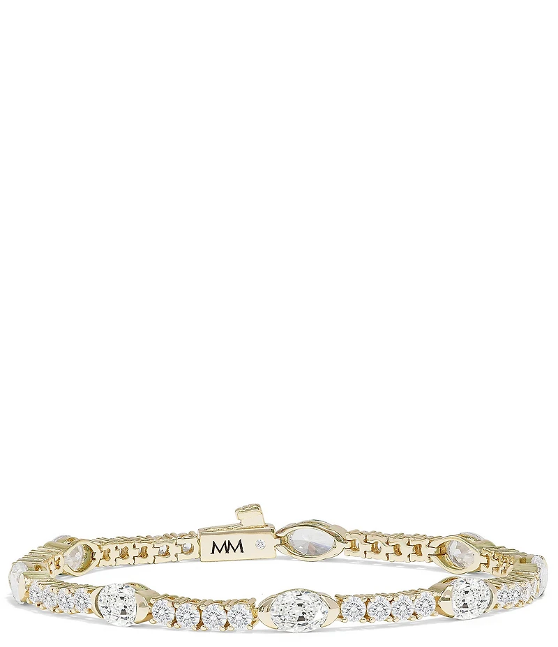 From Melinda Maria, this bracelet features:  Tennis bracelet  14K gold plated brass - simulated diamonds Push box closure  Approx. 7.5" length  Imported.