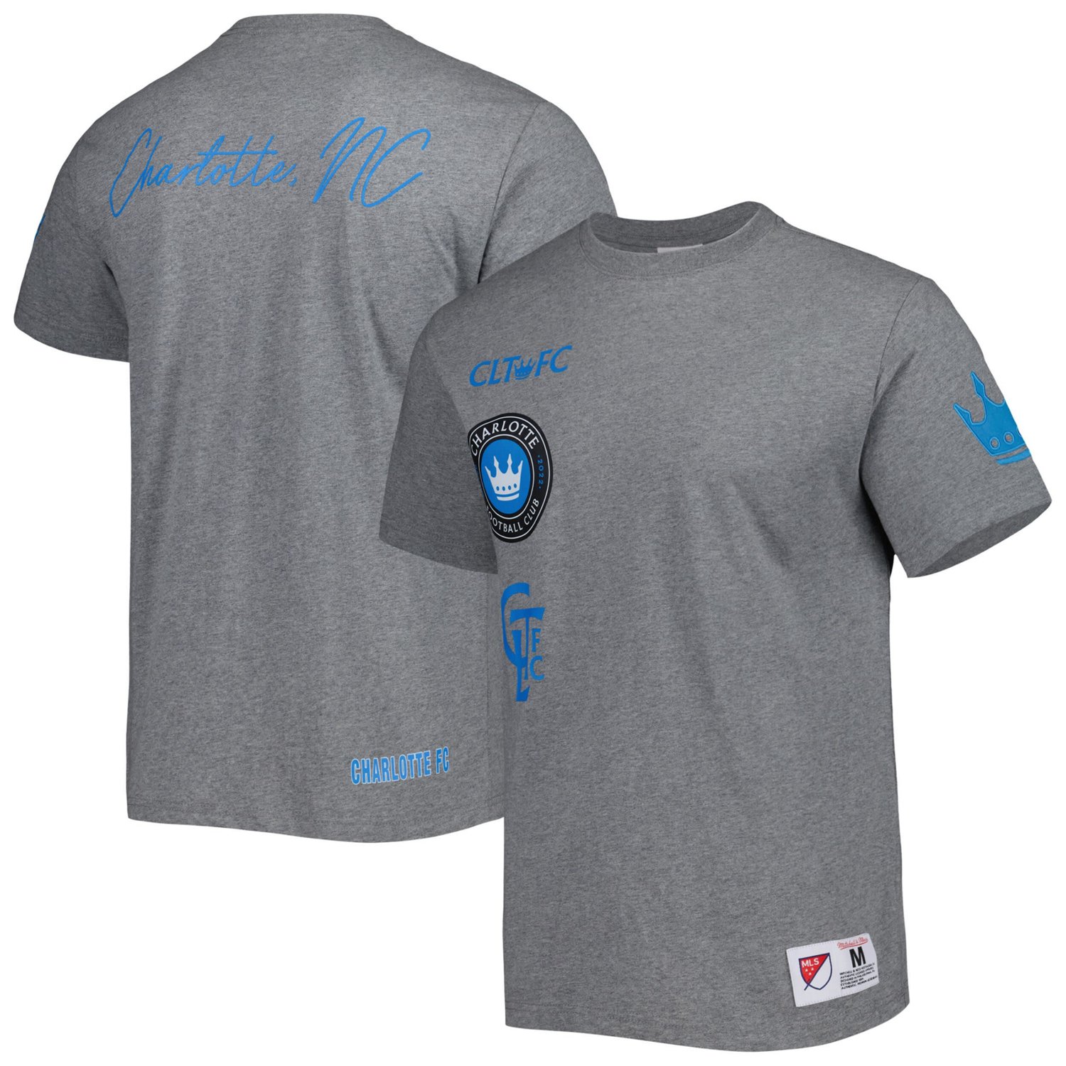 The Mitchell Ness Gray Charlotte FC City Tee is the perfect way to show your support for your favorite soccer club Made from soft and comfortable cotton this tee features embroidered fabric applique and a woven jock tag at the hem ensuring your Charlotte FC pride is on full display Whether you're cheering on the team at the stadium or just showing your support around town this tee is a must-have for any Charlotte FC fan