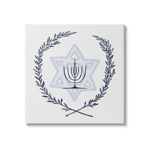 Celebrate the season with this Menorah Wreath Canvas Art Print. Featuring a cute, festive design, this piece will put the perfect holiday accent on your walls! Art measures 24L x 1.5W x 24H in. Distinctively printed on stretched canvas Wrapped edges complete the look Uses high quality inks on Mimaki printers Features a menorah and star of David surrounded by a wreath Hues of blue and white Artist: Susan Jill Weight: 4 lbs. Hangs from back-mounted hardware Made in the USA Care: Dust with a soft, dry cloth. This item is available at Kirklands.com only, not available in stores. Please note: this item cannot be shipped to APO/FPO addresses.