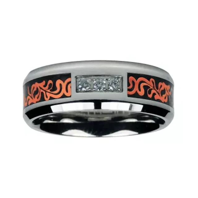 Mens 8MM 1/4 CT. T.W. Natural White Diamond Stainless Steel Tungsten Wedding Band