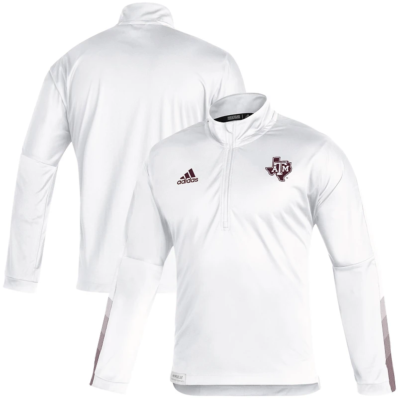 Men's adidas White Texas A&M Aggies 2021 Sideline Primeblue Quarter-Zip Jacket in Chattanooga, TN