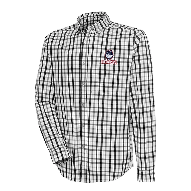 Men's Antigua Black/Gray UConn Huskies Tending Tri-Blend Button-Down Long Sleeve Shirt