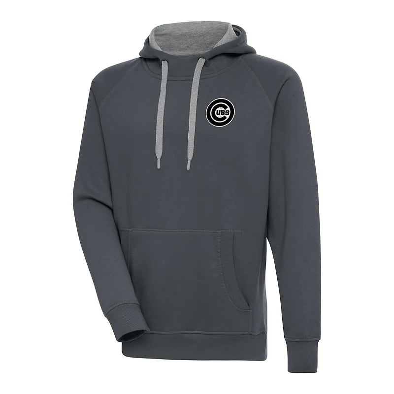 Men's Antigua Charcoal Chicago Cubs Metallic Victory Pullover Hoodie in Chattanooga, TN