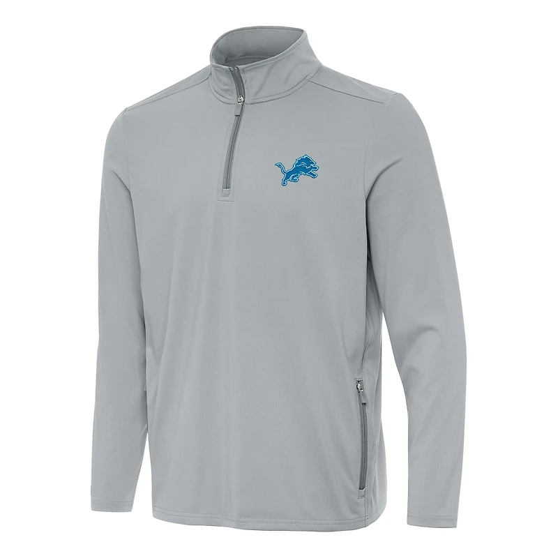 Men's Antigua Gray Detroit Lions Perilous Quarter-Zip Pullover Top in Chattanooga, TN