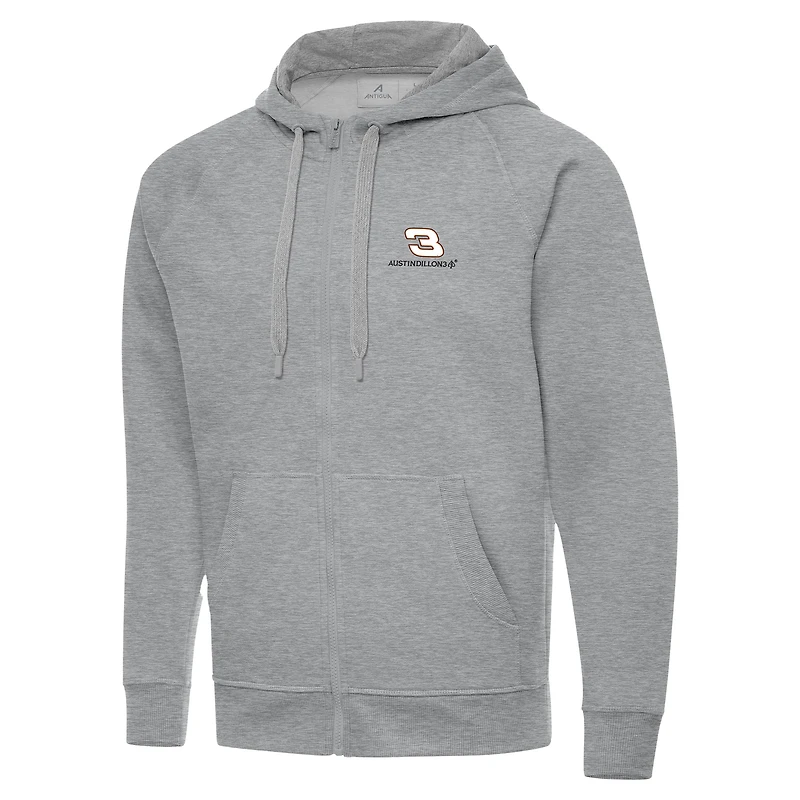 Men's Antigua Heather Gray Austin Dillon Victory Full-Zip Hoodie