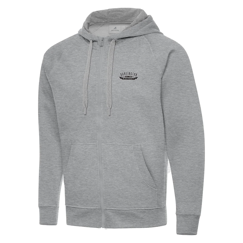 Men's Antigua Heather Gray Darlington Raceway Full-Zip Hoodie
