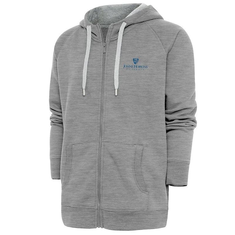 Represent your Johns Hopkins Blue Jays with pride in this Antigua Victory Full-Zip Hoodie. This midweight hoodie is perfect for cooler days, with a soft fleece lining and rib-knit cuffs and hem to keep you cozy. The embroidered Johns Hopkins Blue Jays graphics show off your team spirit, while the two front pockets provide convenient storage. Whether you're a student, alumni, or just a fan of the Blue Jays, this hoodie is the perfect way to show your school spirit.