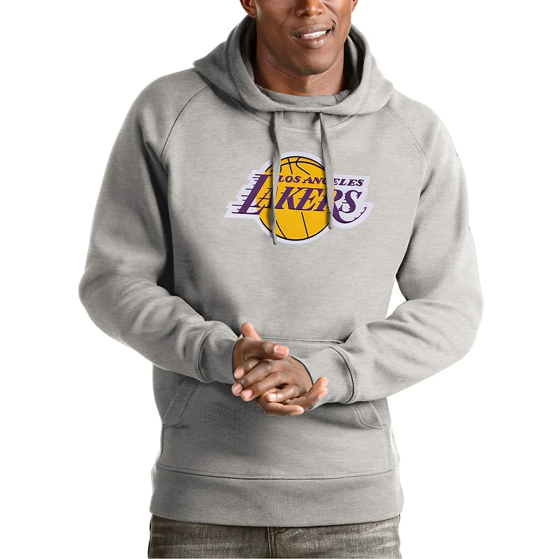 Men's Antigua Heather Gray Los Angeles Lakers Team Logo Victory Pullover Hoodie in Chattanooga, TN