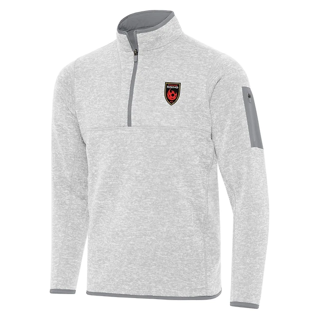 Men's Antigua Heather Gray Phoenix Rising FC Fortune Quarter-Zip Pullover