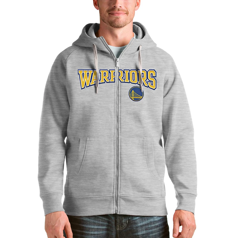 Men's Antigua Heathered Gray Golden State Warriors Victory Full-Zip Hoodie