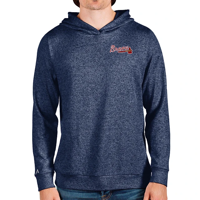 Men's Antigua Heathered Navy Atlanta Braves Absolute Pullover Hoodie